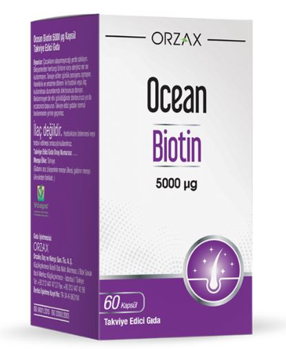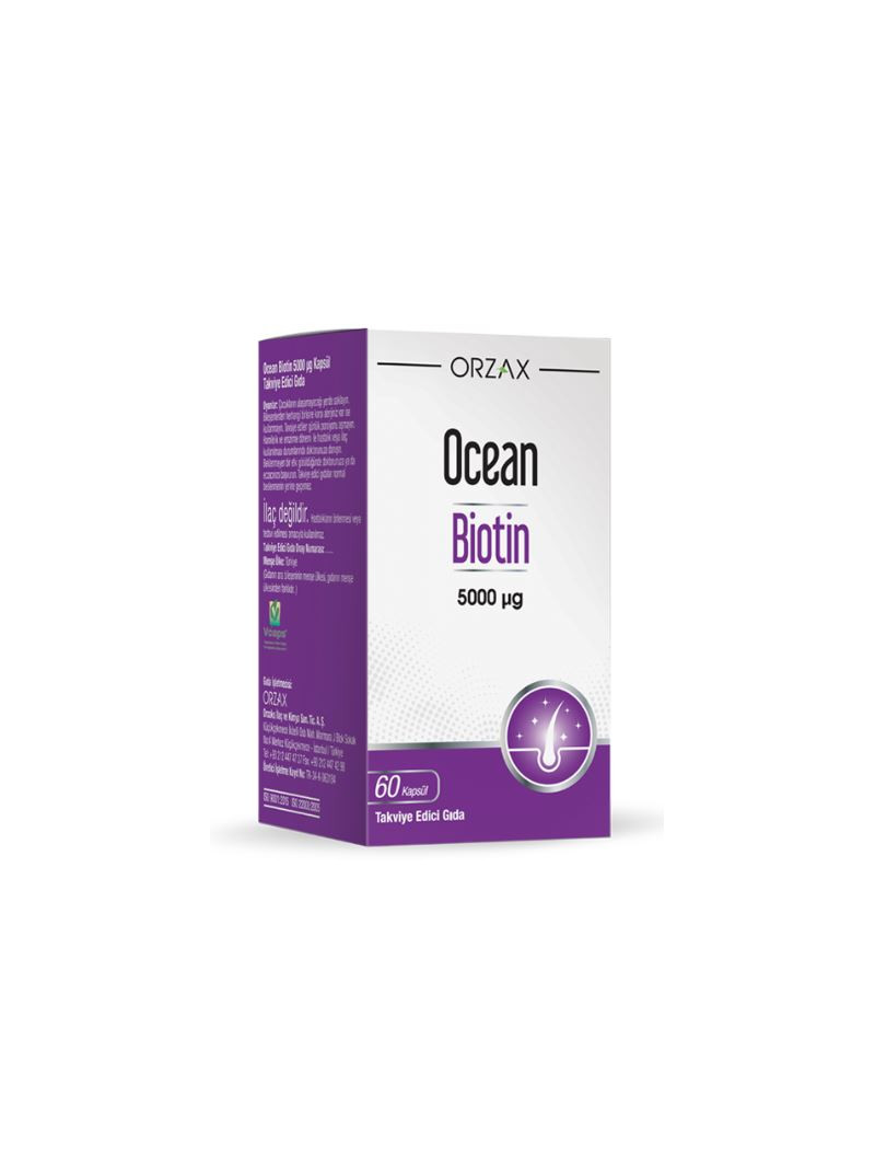 Biotin, H vitamini veya B7 vitamini olarak adlandırılan suda çözünen bir vitamindir. Biotin vitamini vücutta sentezlenemez, dışarıdan alınması gerekir. Vücuda gereğinden fazla biotin alındığında fazlası idrarla dışarı atılmaktadır. Ocean Biotin her kapsülünde 5000 mcg biotin içerir ve Vcaps bitkisel kapsüllerdedir. Vcaps kapsül kullanım kolaylığı sağlar.