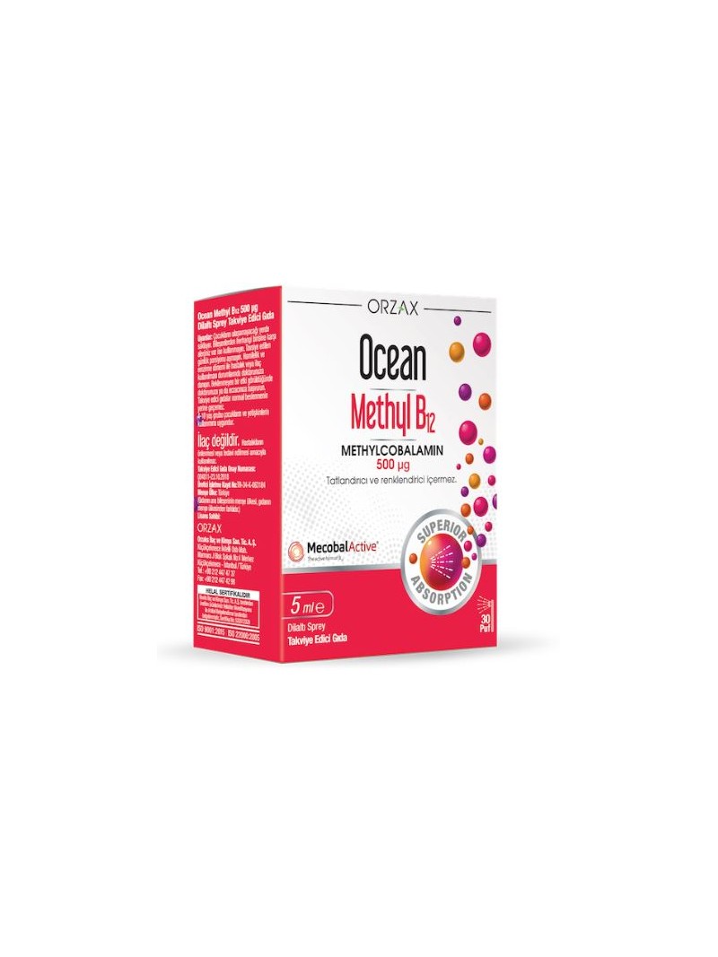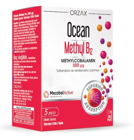 Ocean Methyl B12, metilkobalamin formda aktif B12 vitamini içeren gıda takviyesidir. Sprey form avantajı ile hızlı ve kolay kullanımı ile avantaj sağlar.