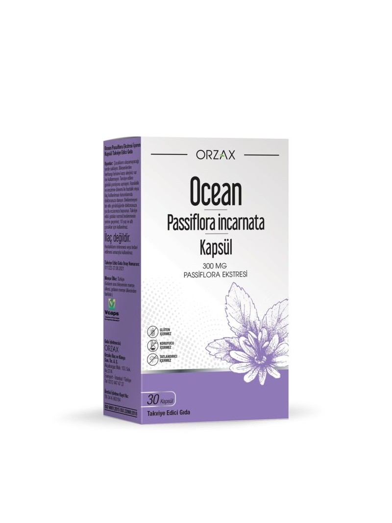 Passiflora incarnata L., Passifloraceae familyasına özgü, yüzyıllardır tedavi amaçlı kullanılan bir bitkidir. Ocean Passiflora İncarnata Kapsül, her kapsülünde 300 mg Passiflora ekstresi içeren bir gıda takviyesidir. Ocean Passiflora İncarnata Kapsül, patentli Vcaps® kapsülleri sayesinde vegan ve vejetaryen kullanıma uygundur.