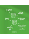 Ürünün içeriğinde bulunan B2 vitamini; normal cildin ve görme yetisinin korunmasına katkıda bulunur.
