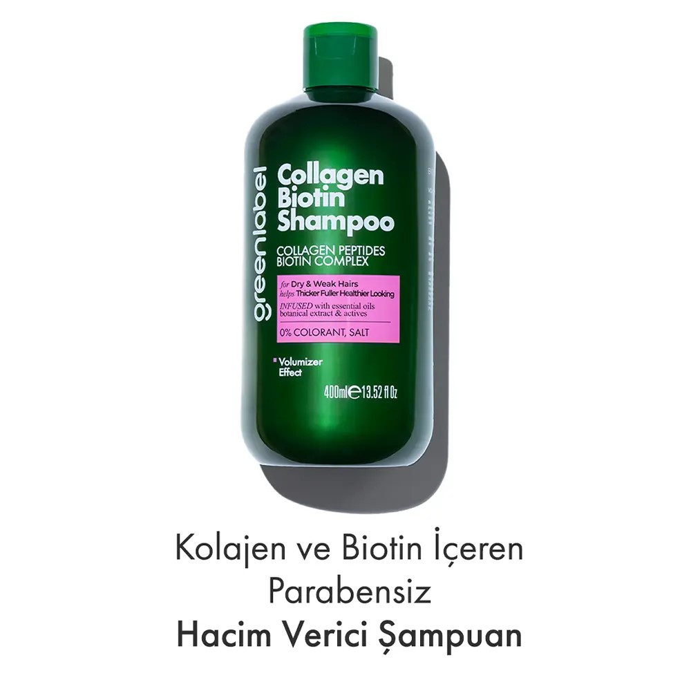 GREENLABEL Kolajen Ve Biotin Parabensiz Tuzsuz Hacim Verici Şampuan 400 ML