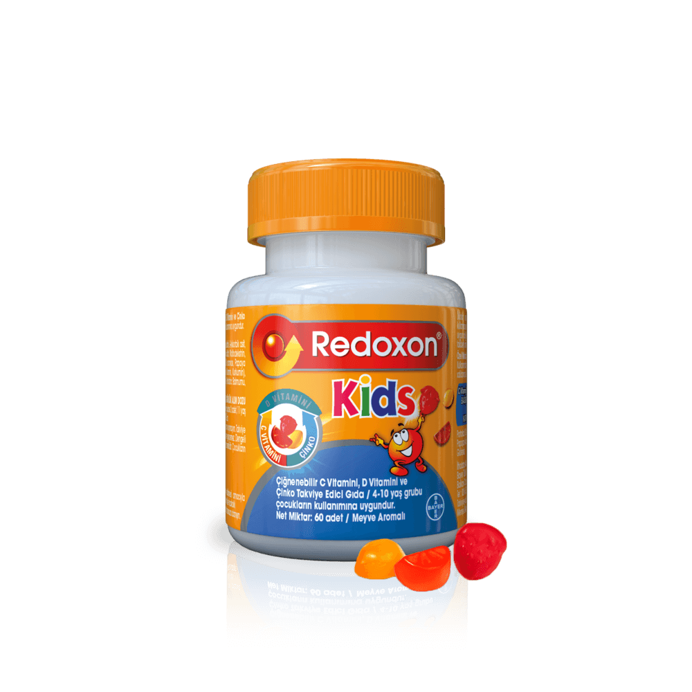 Çocukların zevkle kullanacağı lezzetli ve farklı aromalara sahip çiğnenebilir gummy formdaki Redoxon Kids, günlük alınması gereken doz ile uyumludur. Çilek, papaya ve portakal aromalı Redoxon Kids çiğneme tabletleri, normal beslenmenin yanında günlük kullanımına uygundur.